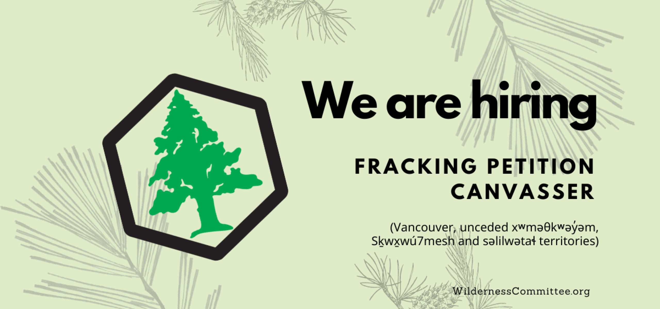 Your job will be to canvas door to door, or occasionally at special events or busy public locations, to gather signatures on our petition asking the provincial government to implement a managed decline of the LNG industry and end fracking in B.C. You’ll be responsible for representing the Wilderness Committee’s positions to members of the public and answering questions about fracking in B.C.