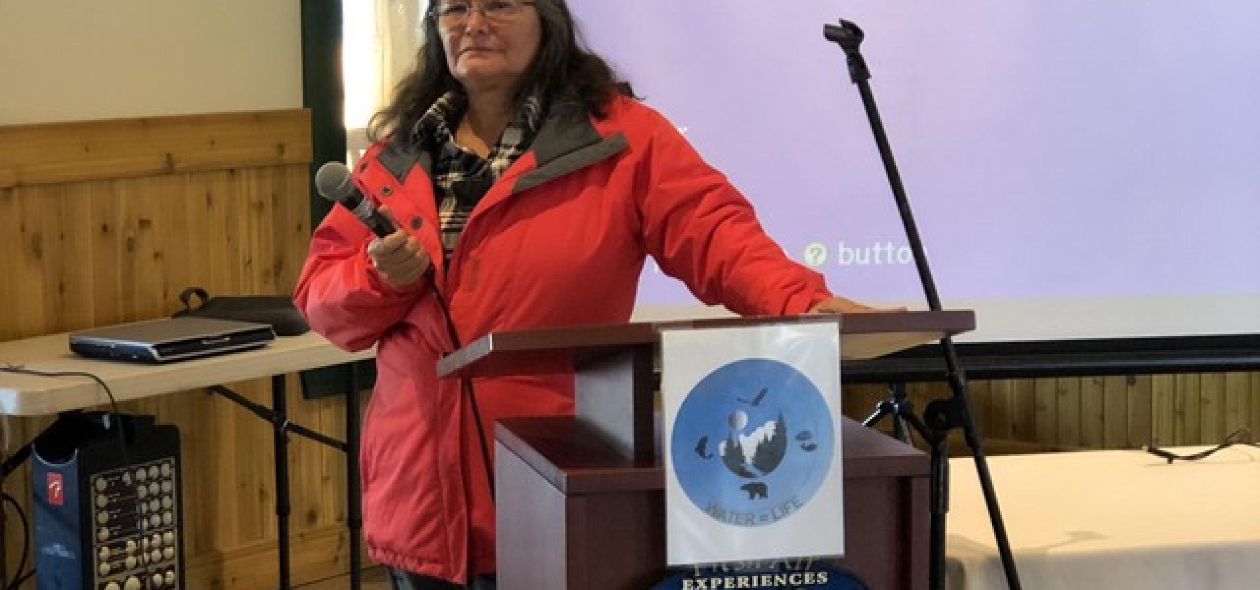Former Xatsull Chief Bev Sellars travelled to the meeting to speak about the 2014 Mount Polley disaster and its impact on her First Nation near Williams Lake. The fact that Imperial Metals, the owner Mount Polley, is behind the proposed mining work in the donut hole has caused significant concerns for environmentalists and First Nations.