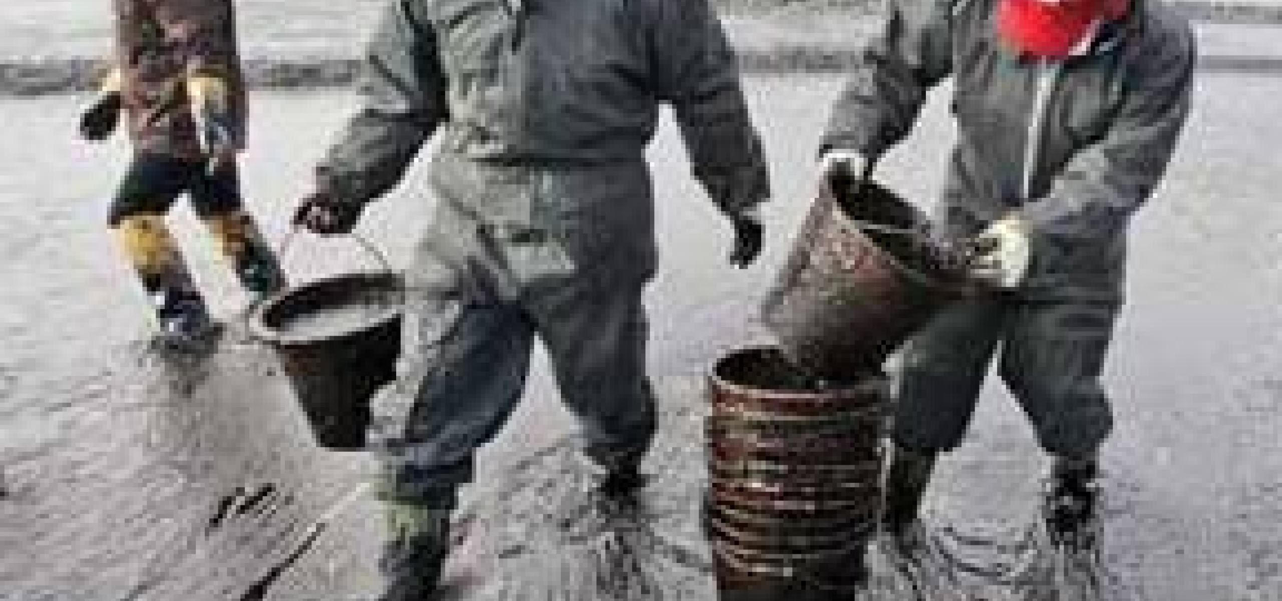 Photo: Workers attempt to clean up Gulf oil spill in USA