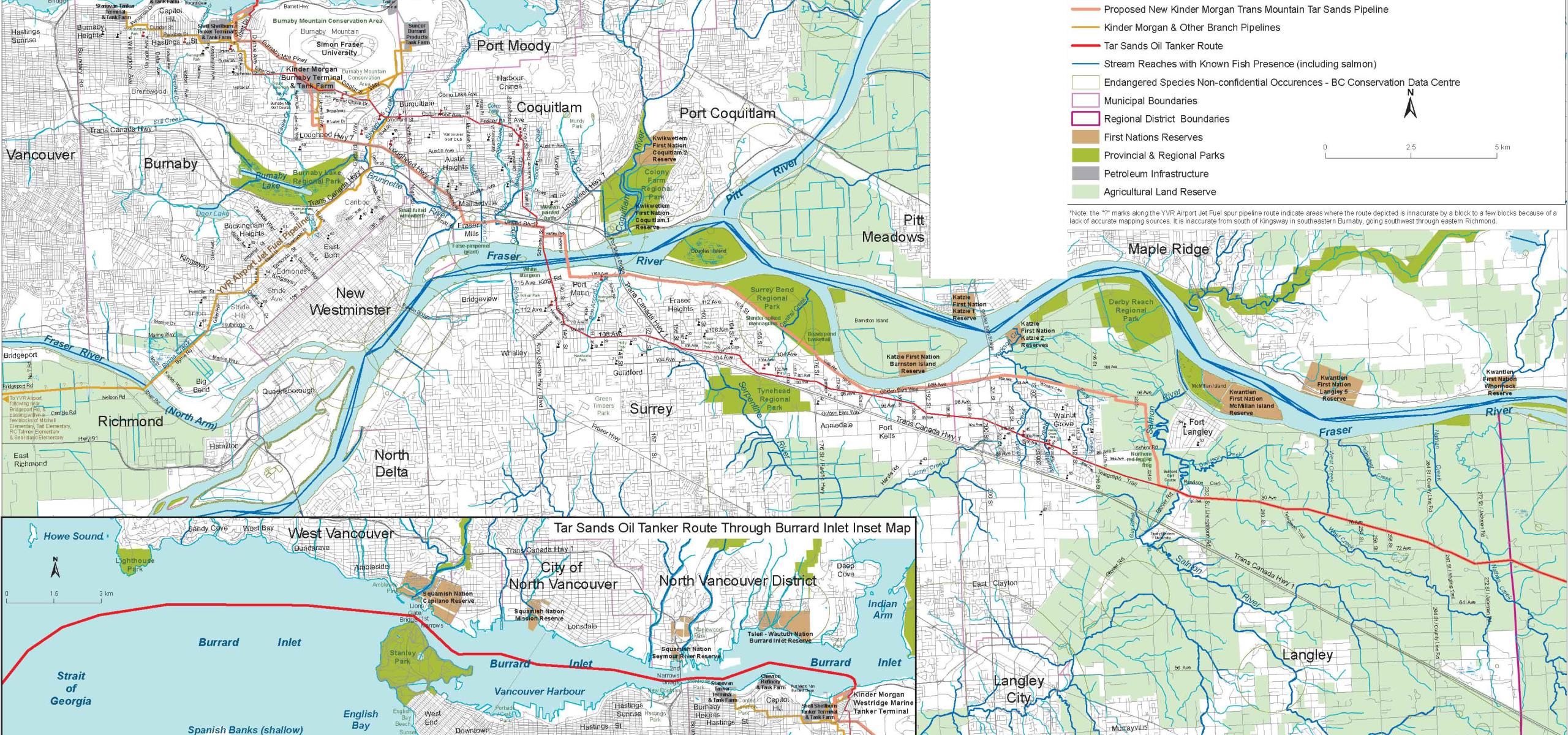 The Wilderness Committee has produced a series of maps of the Kinder Morgan Trans Mountain pipeline route, as a way to help educate people about the many natural areas, rivers, wildlife habitats, and communities that would be affected in the case of an oil spill.