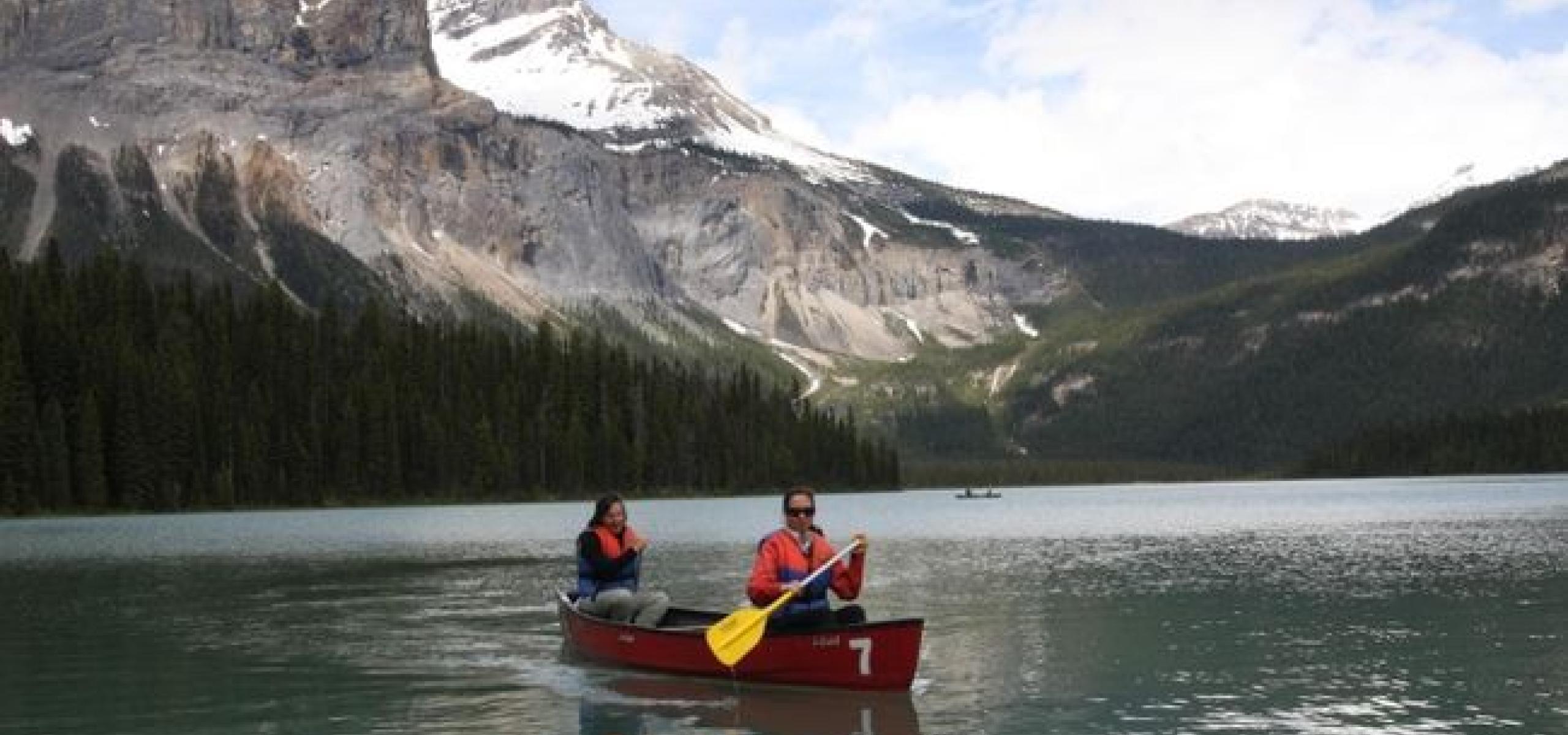 Photo: Visitors to B.C.'s Yoho National Park spin around Emerald Lake in a rented canoe.