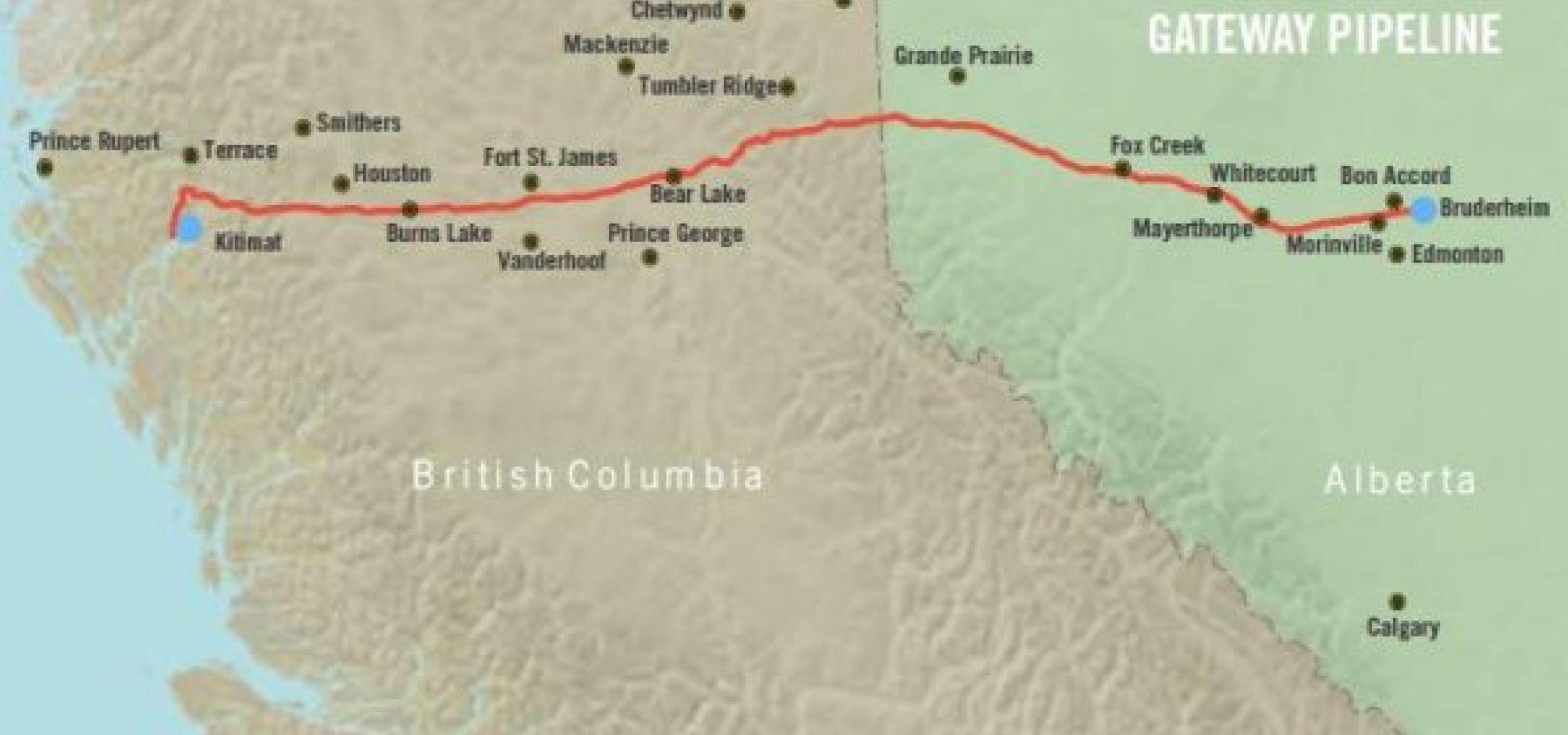 Photo: A map shows the proposed Enbridge Northern Gateway pipeline route. Courtesy of Enbridge.