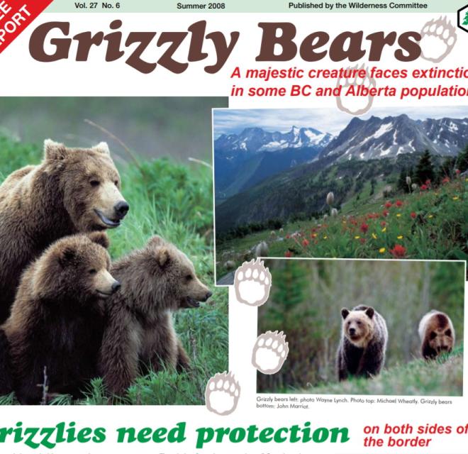 Grizzly bears hold a certain place in our hearts - a revered yet feared beast of up to 375 kg which can stand 6 feet tall and conjures up images of rugged and unspoiled wilderness. A subspecies of brown bear, grizzlies historically ranged from Alaska down to Mexico and as far east as Manitoba. Unfortunately, human fear of the grizzly and encroachment of their habitat has left the grizzly virtually non-existent in Canada's southern provinces outside of British Columbia (BC) and Alberta. The few remaining populations of grizzly that straddle the Canada-US border in BC and Alberta are in trouble, and need our actions to help them recover.