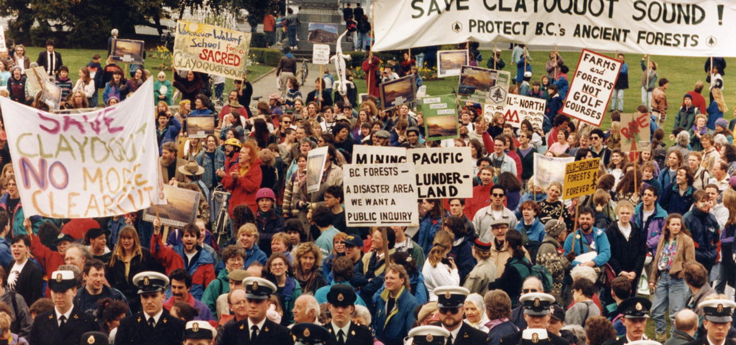 There were many protests calling for the protection of Clayoquot Sound’s intact ancient forested valleys, making the area a national nature celebrity. (See hour-long video of 1993 Clayoquot Sound protests)