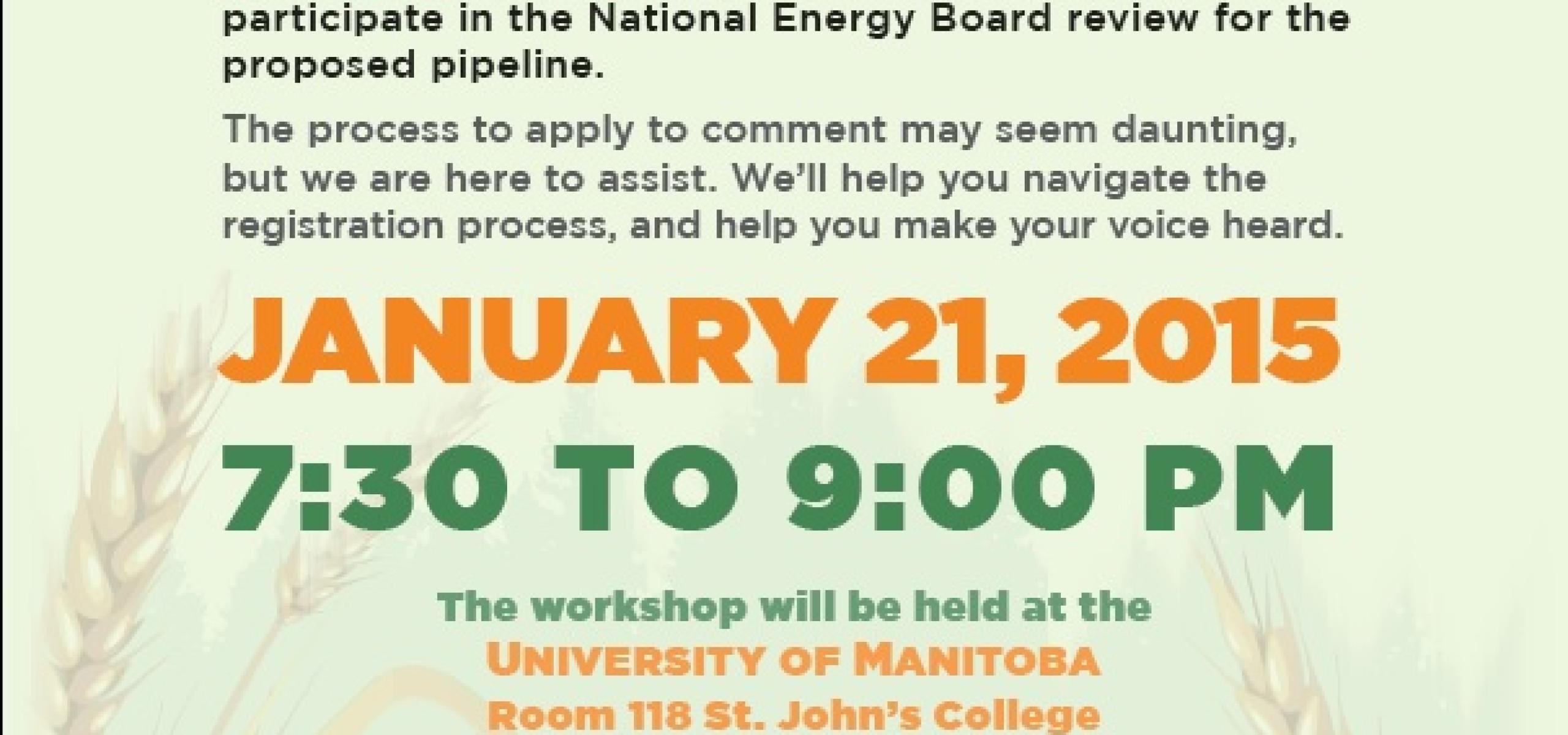 Join the Wilderness Committee and Climate Change Connection for a workshop on how to register to participate in the National Energy Board (NEB) review for the proposed Energy East pipeline.