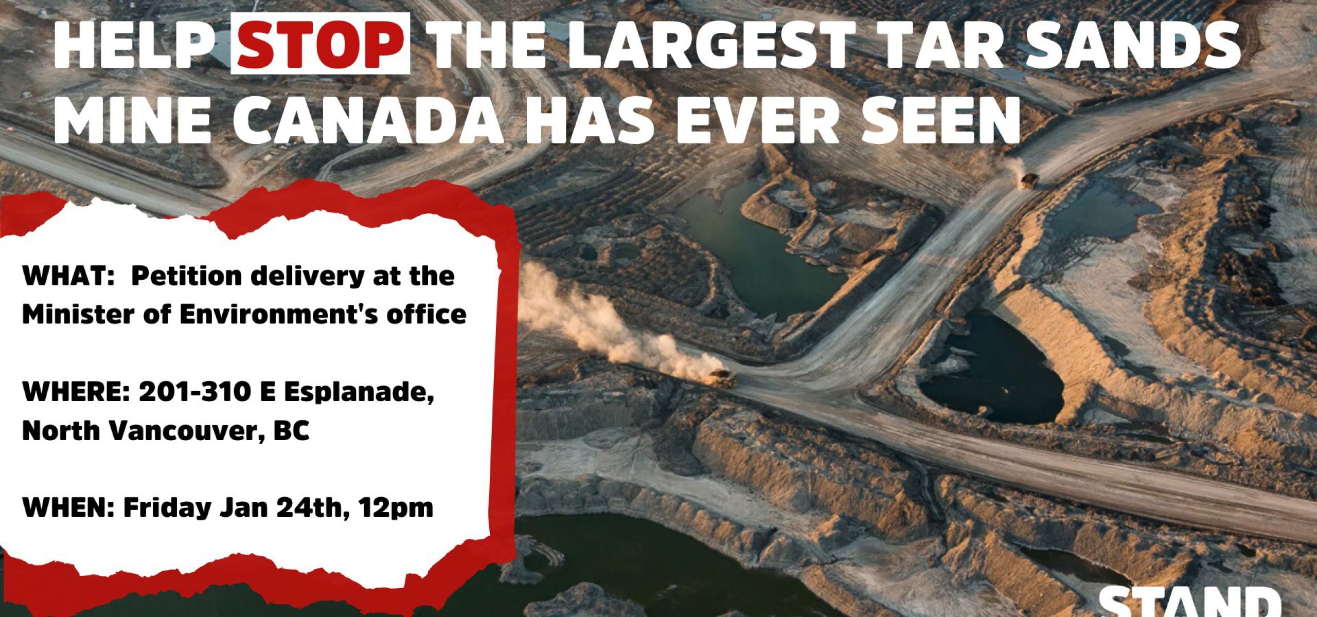 On Friday January 24th, we’ll be heading to the Minister of Environment’s office in North Vancouver to deliver a public petition urging the government to reject Teck. The more people there to deliver it, the louder our message will be. Hope to see you there!