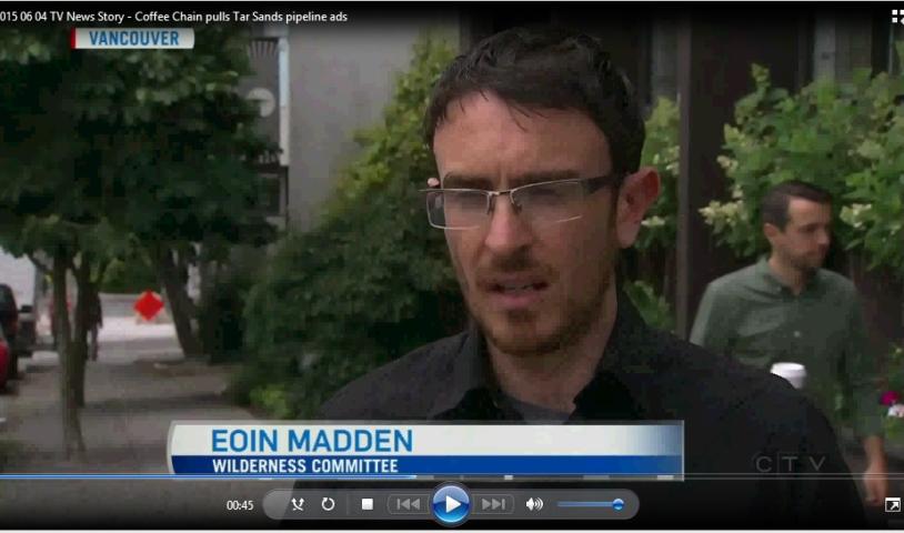 TV News Story - Coffee Chain pulls Tar Sands pipeline ads