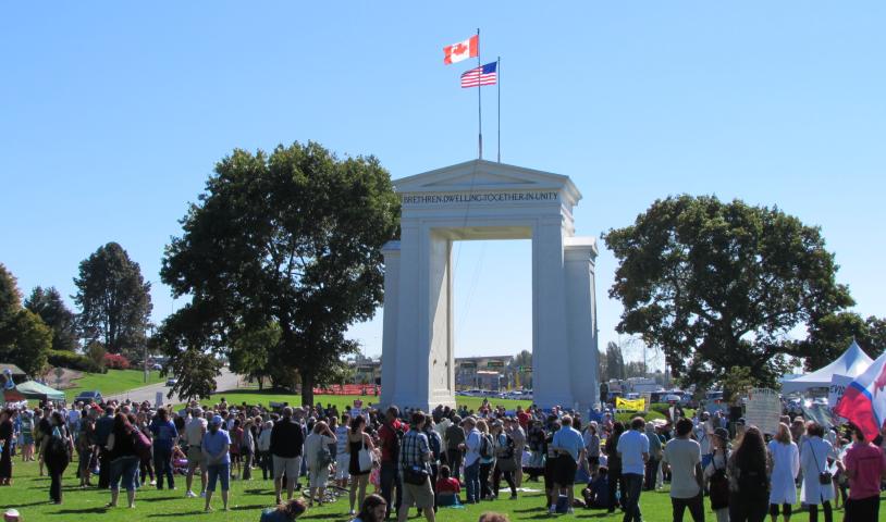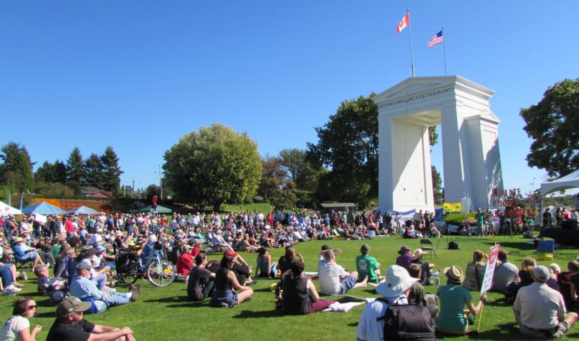 Hundreds of people from both sides of the Canada-U.S. border converged at Peace Arch Provincial Park for a climate...