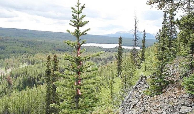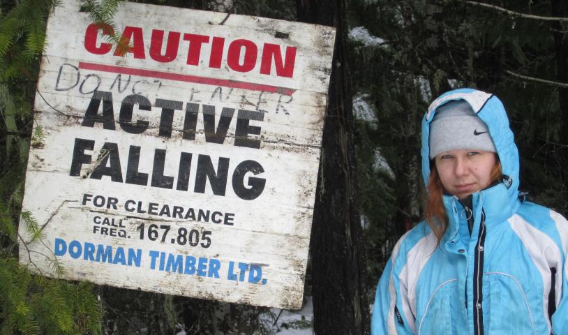 Photo: Logging sign in area set aside by the BC government to protect habitat critical for the survival of the spotted...