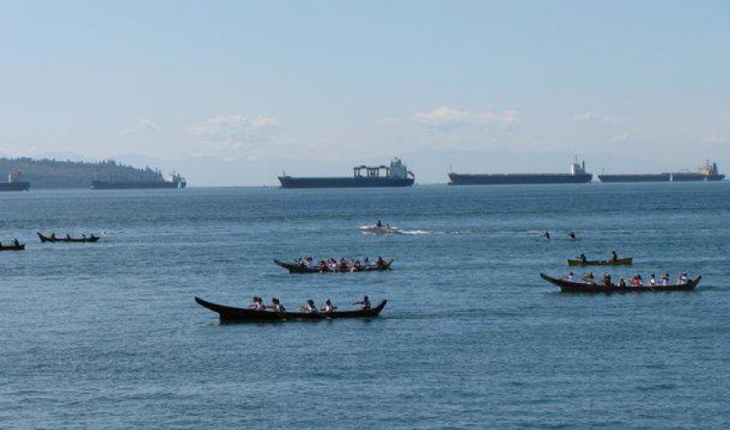 Armada of ocean-going canoes paddles against Kinder Morgan