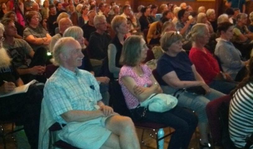 It was standing room only as more than 300 people packed a community hall on Tuesday night in Premier Christy Clark's...