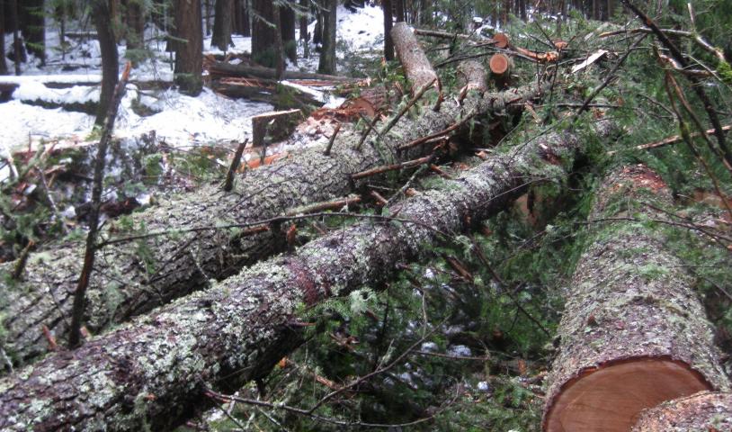 Photo: Recently felled timber in area set aside for the protection of spotted owl habitat in the Chilliwack Valley...