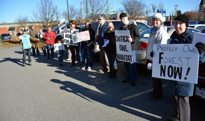 A group protesting logging in one of the spotted owl's last remaining habitats in Canada tried to crash the nomination...