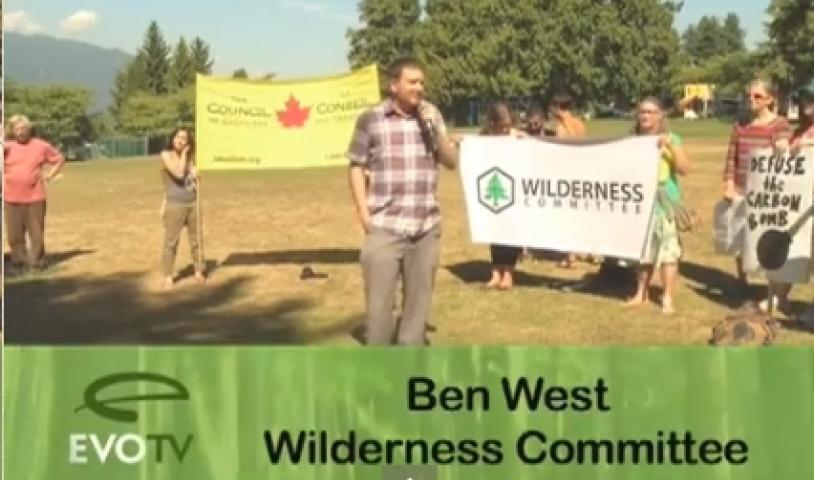 Ben West of the Wilderness Committee addresses the crowd at the No Tankers, No Pipelines, No Tar Sands demonstration...