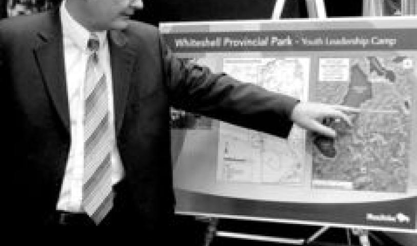PHOTO: Conservation Minister Stan Struthers outlines the details of a children's camp in the Whiteshell. (KEN...