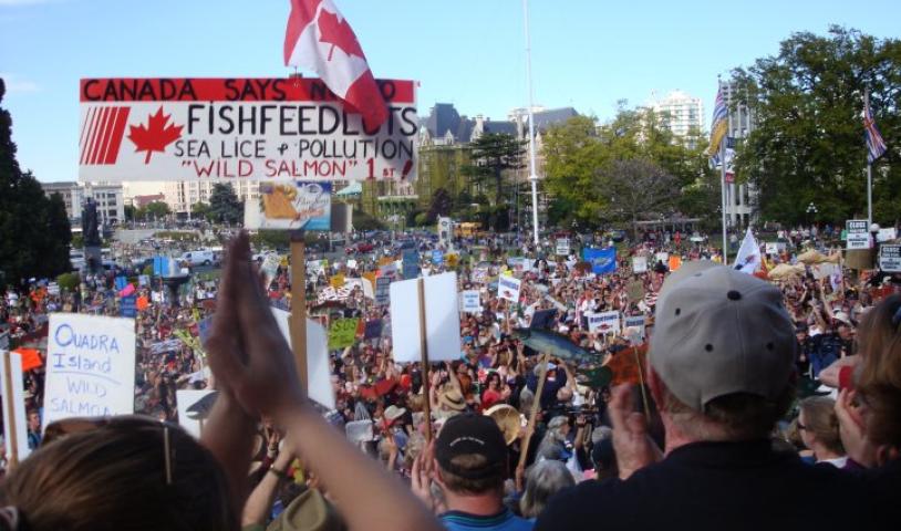 Thousands of people gathered for the “Salmon are Sacred Rally” at the Legislature today to demand that industrial fish...