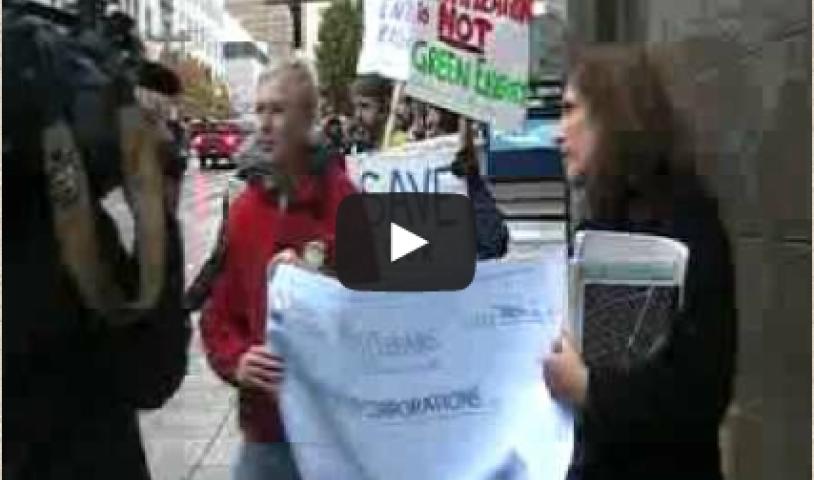 Wilderness Committee activists protest in front of Private Power Developers' annual meeting