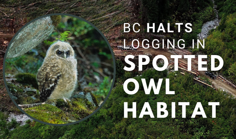 Spô’zêm First Nation and environmental groups celebrate halt to logging in forests where last three spotted owls live