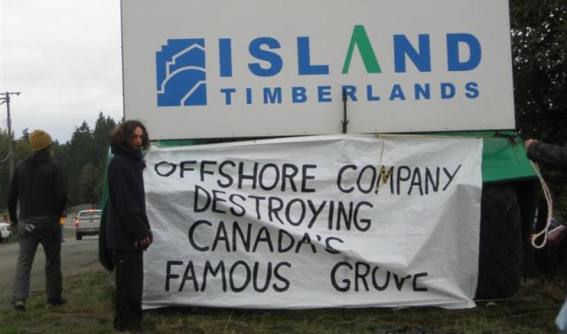Cathedral Grove protest moves to Island Timberlands Northwest Bay Nanoose office today