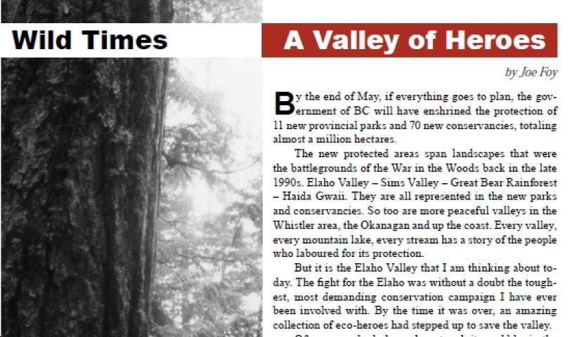 May 15th, 2008 - Read Joe Foy's Wild Times column in the Watershed Sentinel as he explains how one BC wilderness...