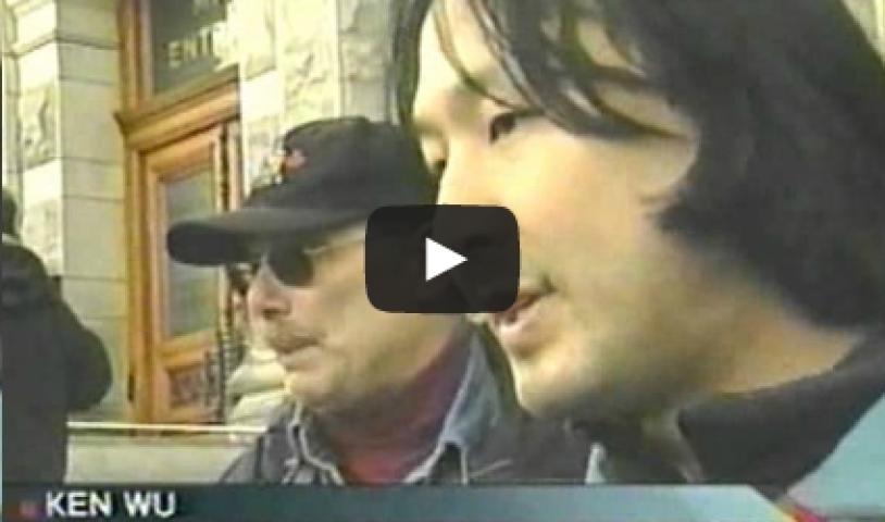This is a TV news story about a Wilderness Committee rally at British Columbia's Legislative Buildings in Victoria...