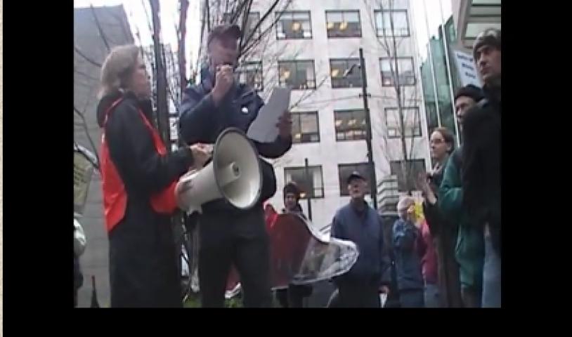 This is a TV news story about an environmental protest rally in Vancouver BC, near the site where Canada's provincial...