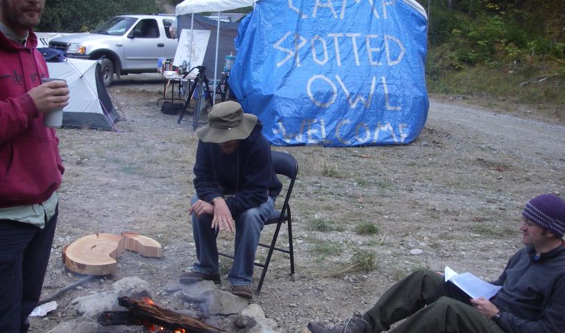Research camp set up in an attempt to halt logging in active Spotted Owl site