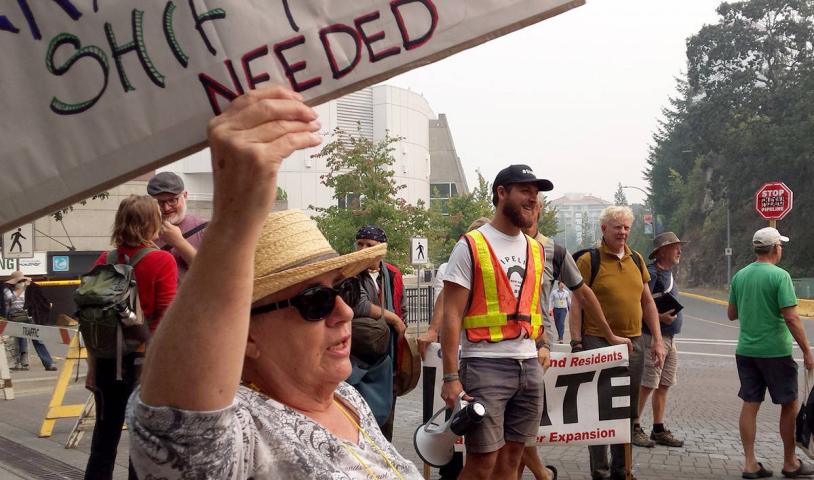 Protesters gather in Nanaimo to speak against prime minister and Trans Mountain pipeline With Prime Minister Justin...