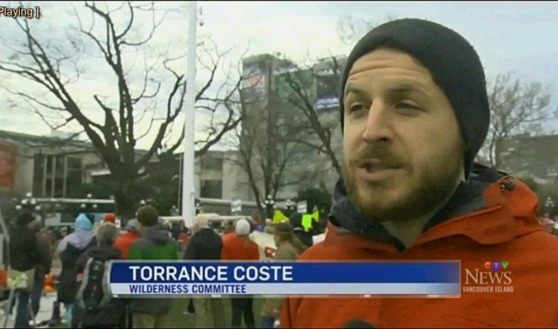 This is a TV news story about a rally put on by several environmental organizations including the Wilderness Committee...