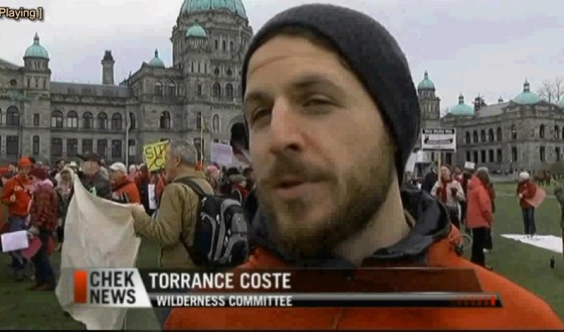 This is a TV news story about a rally at the opening of the BC Legislature organized by several environmental groups...