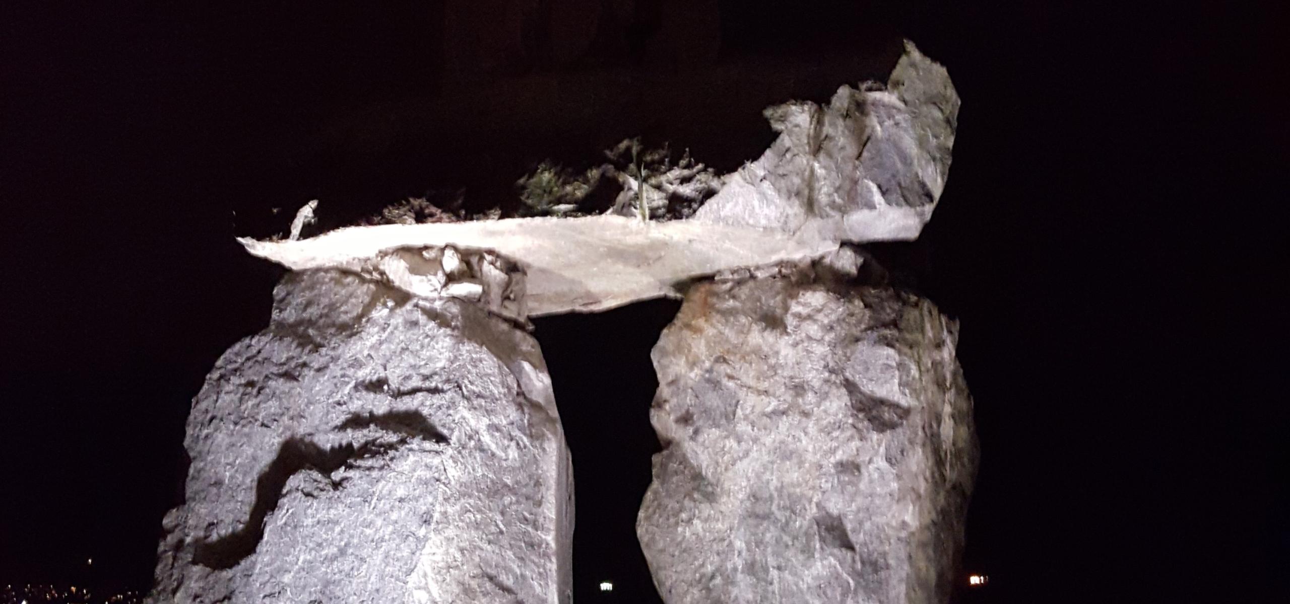 VANCOUVER – Environmentalists left their mark at beloved places on the Vancouver sea wall Wednesday evening, as part of a creative project to demand climate action from Canada’s political leaders.