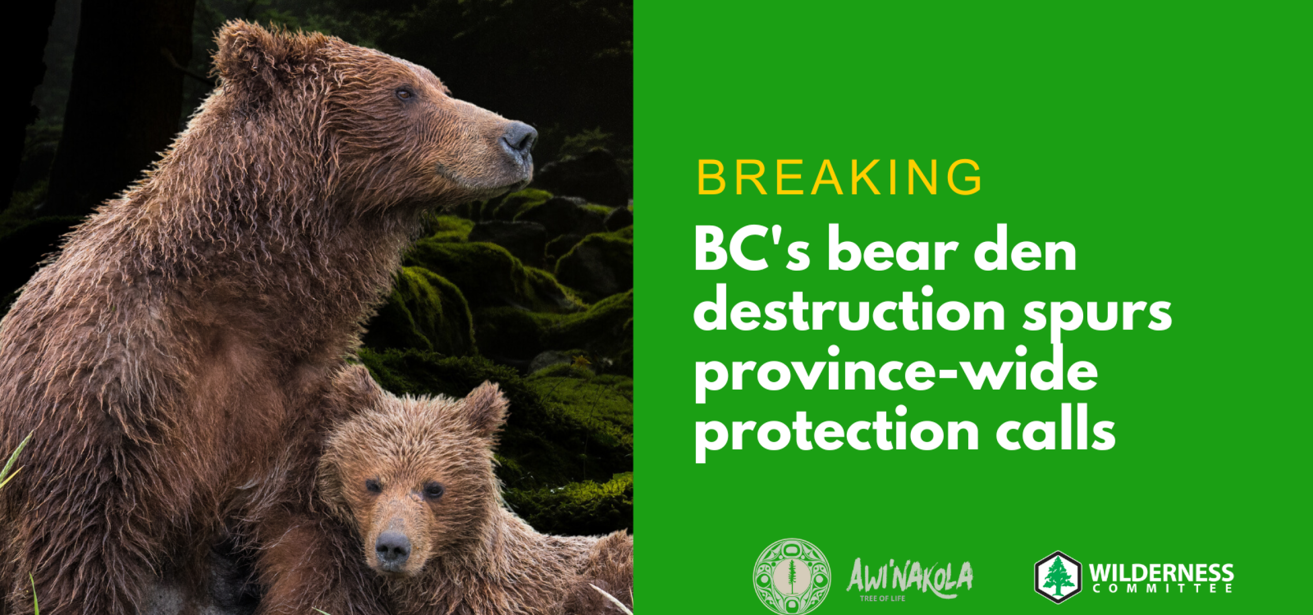 Renewed calls for province-wide bear den protections as controversial den destruction and animal cruelty continue at Site C Dam and on Vancouver Island