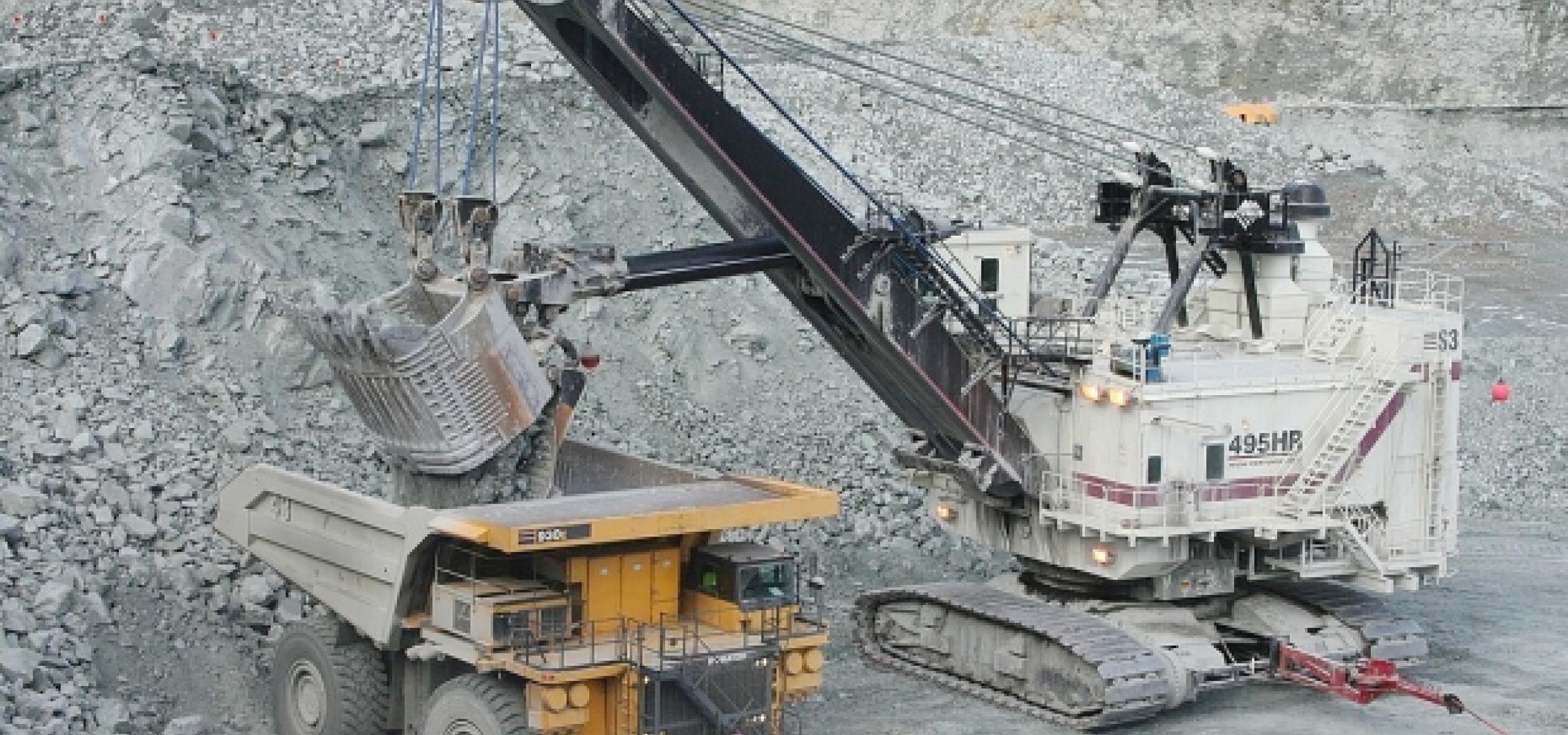 Photo: A huge truck is loaded with ore for hauling to the mill at an open pit at the Gibraltar mine.