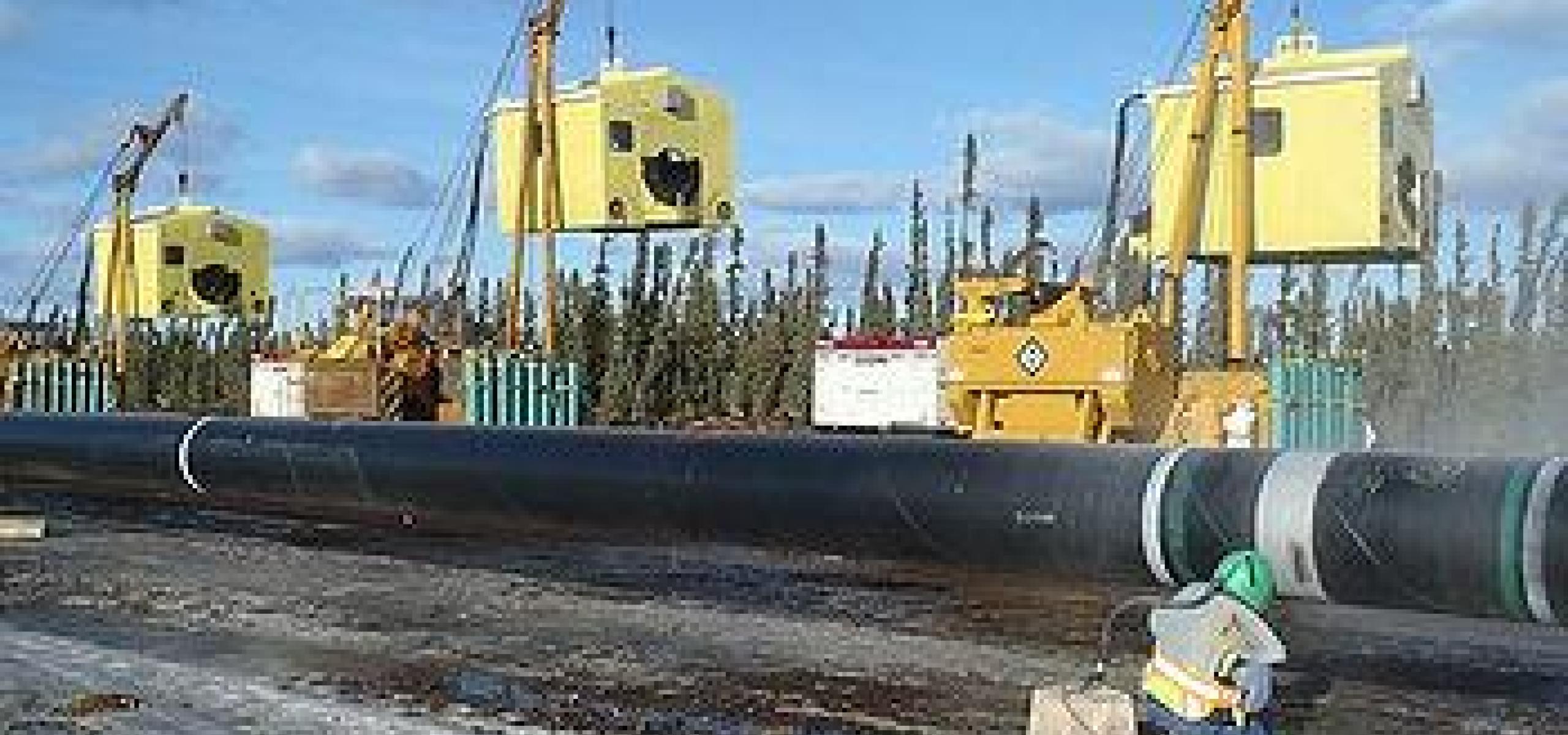 Pipeline under construction across Alberta with welding shacks on booms (Photo by Jason Woodhead)