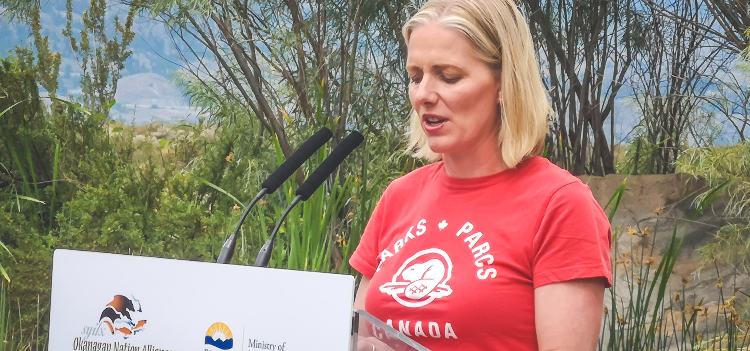 This morning, the government of Canada, B.C. and the Syilx/Okanagan Nation signed the memorandum of understanding (MOU). Federal Environment Minister Catherine McKenna, B.C. Minister of Environment George Heyman, Chief Clarence Louie of the Osoyoos Indian Band and Chief Keith Crow of the Lower Similkameen Indian Band spoke to their vision for conservation in the region. The MOU ensures the creation of the park regardless of political change.