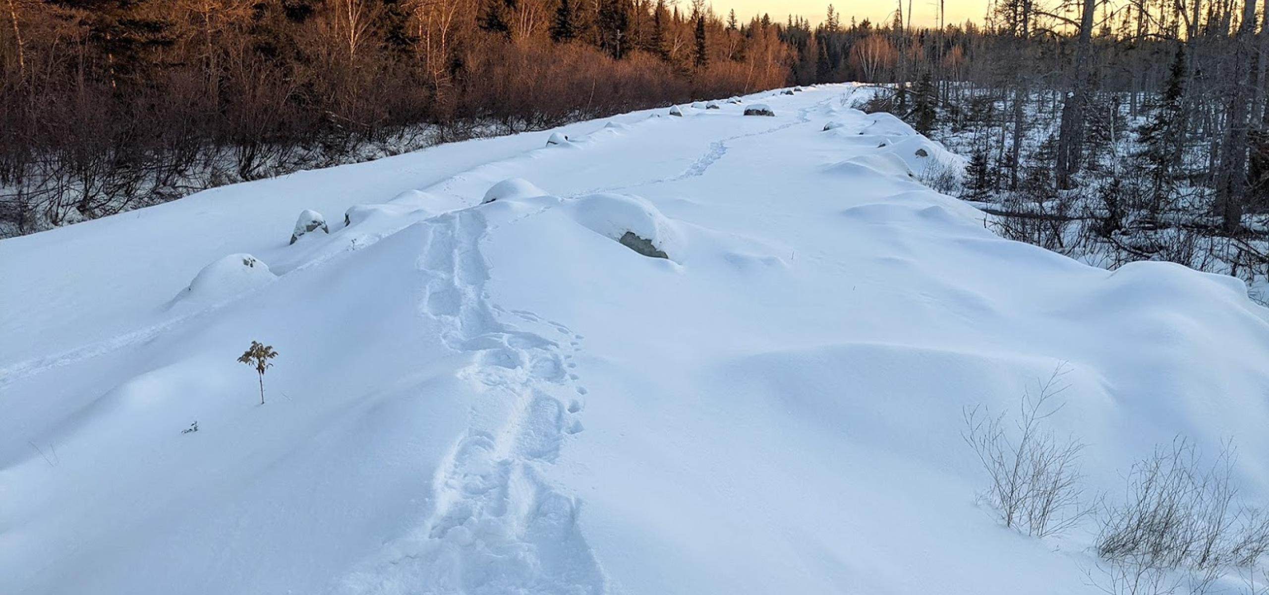 Reder undertook an expedition into this ancient peatland in eastern Manitoba to document the ecosystem that would be lost if Sun Gro’s strip mine was allowed to proceed. At the site of the proposed mine, the vegetation has been bulldozed off the trail, damaging spruce and tamarack trees lining the peat bog. Satellite imagery shows the road was not this clear last year.