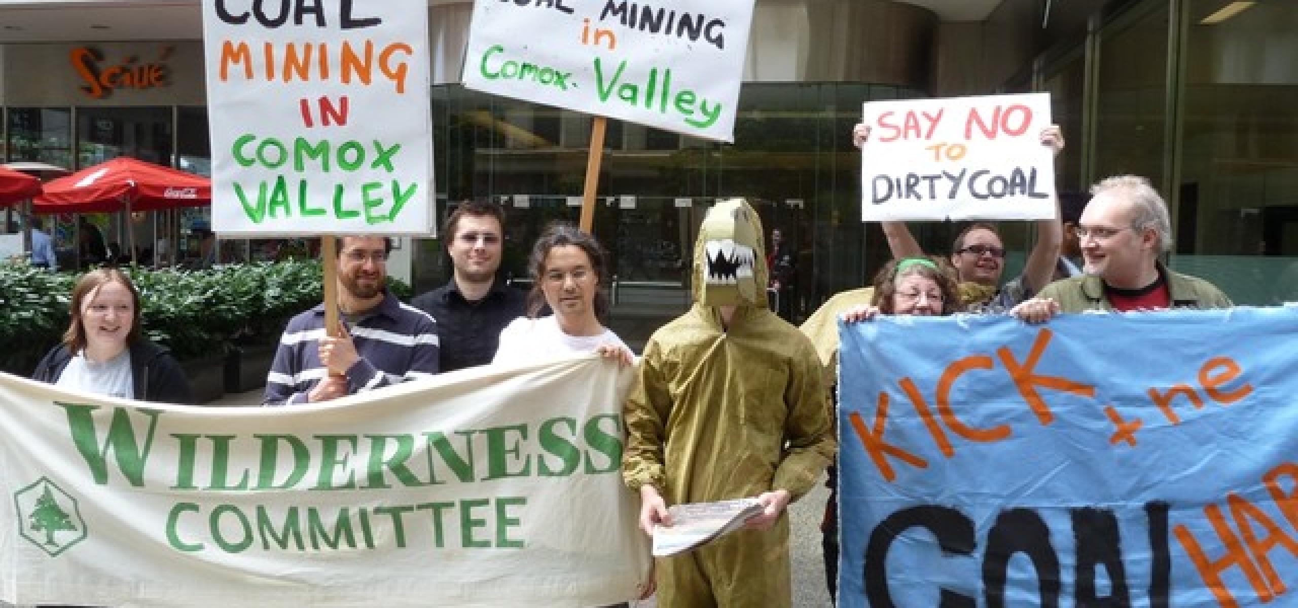 While shareholders and executives of the Compliance Coal Corporation discussed preliminary plans for the Raven Underground Coal Project -- the first one proposed for the region in 25 years -- at their annual general meeting in Vancouver today, protesters (including one in a giant lizard costume) chanted on the sidewalks outside 'Say no to dirty coal!'