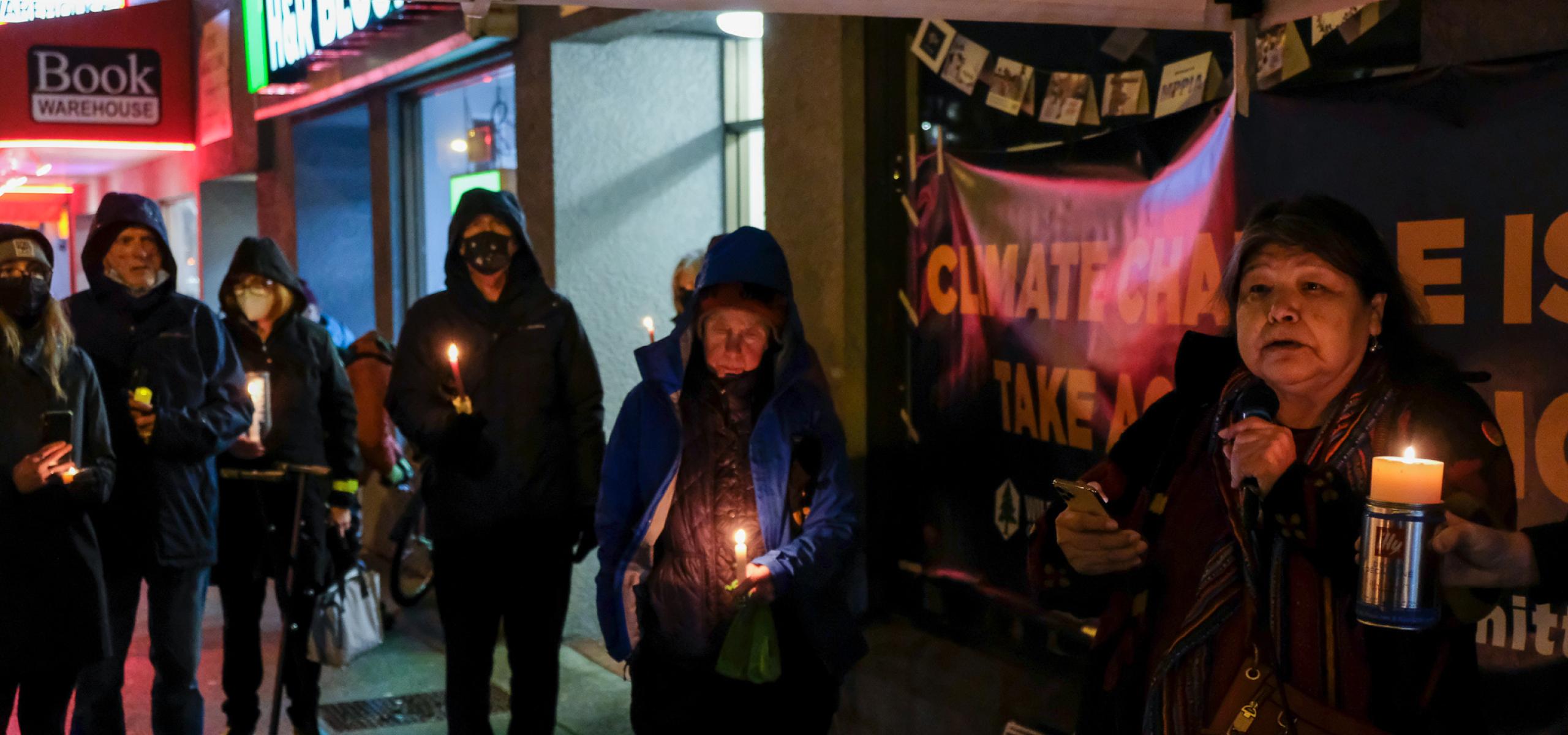 VANCOUVER / UNCEDED xʷməθkʷəy̓əm, Sḵwx̱wú7mesh AND səlilwətaɬ TERRITORIES — Communities gathered at 25 different MLA offices across the province Monday evening to remember more than 600 British Columbians who died in this year’s climate disasters.