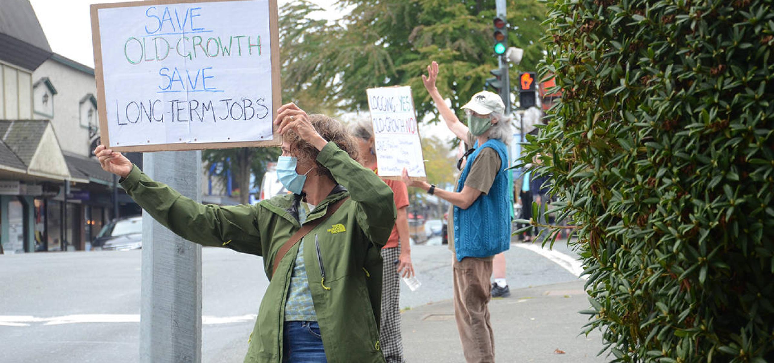 The speakers emphasized they support second-growth logging and value-added forestry jobs, but they say they want to protect what remains of stands of trees that can be hundreds of years old but are disappearing on Vancouver Island each day.