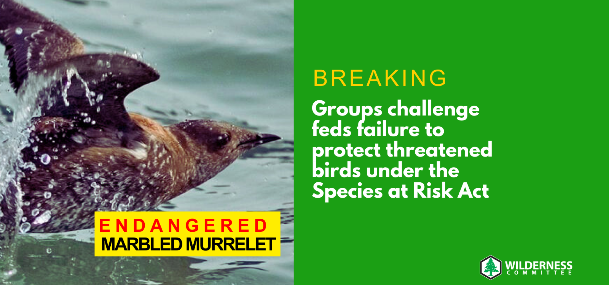 “With a growing number of endangered species like the marbled murrelet slipping through the cracks in B.C., we’re depending on the federal government to follow through on commitments like those under the Migratory Birds Convention Act. Until British Columbia enacts effective biodiversity legislation, marbled murrelets and many other species need other levels of government to step up to the plate and act for their survival and recovery.”