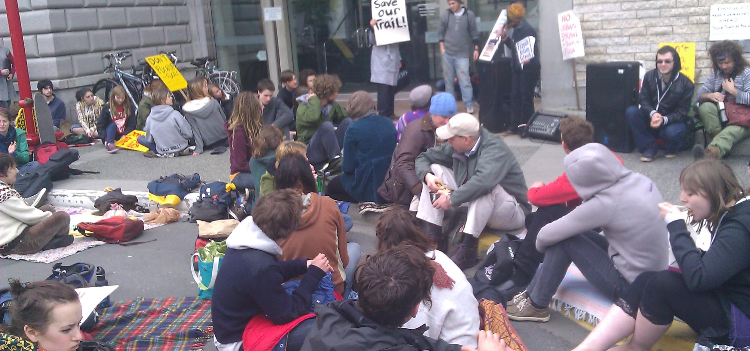 A large crowd gathered to share food and build community outside of the CRD offices. Chants of “Stop the Sprawl” filtered up to the CRD board room, where I am sure directors could hear us.