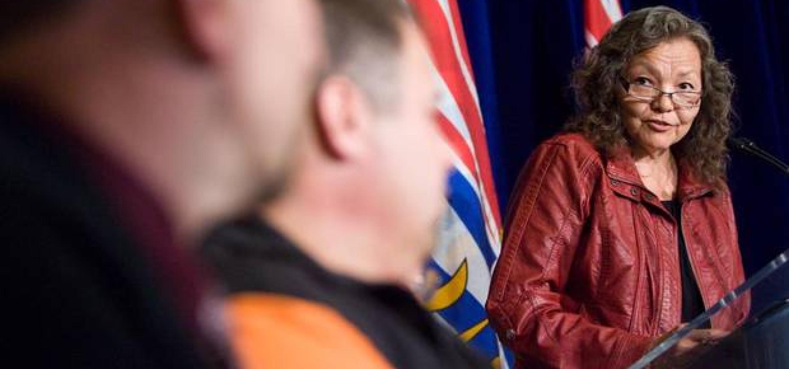 Photo: Tribal Chief Liz Logan speaks to fellow dignataries at a Treaty 8 First Nations agreement signing at B.C. Legislature in Victoria on Thursday, May 15, 2014.