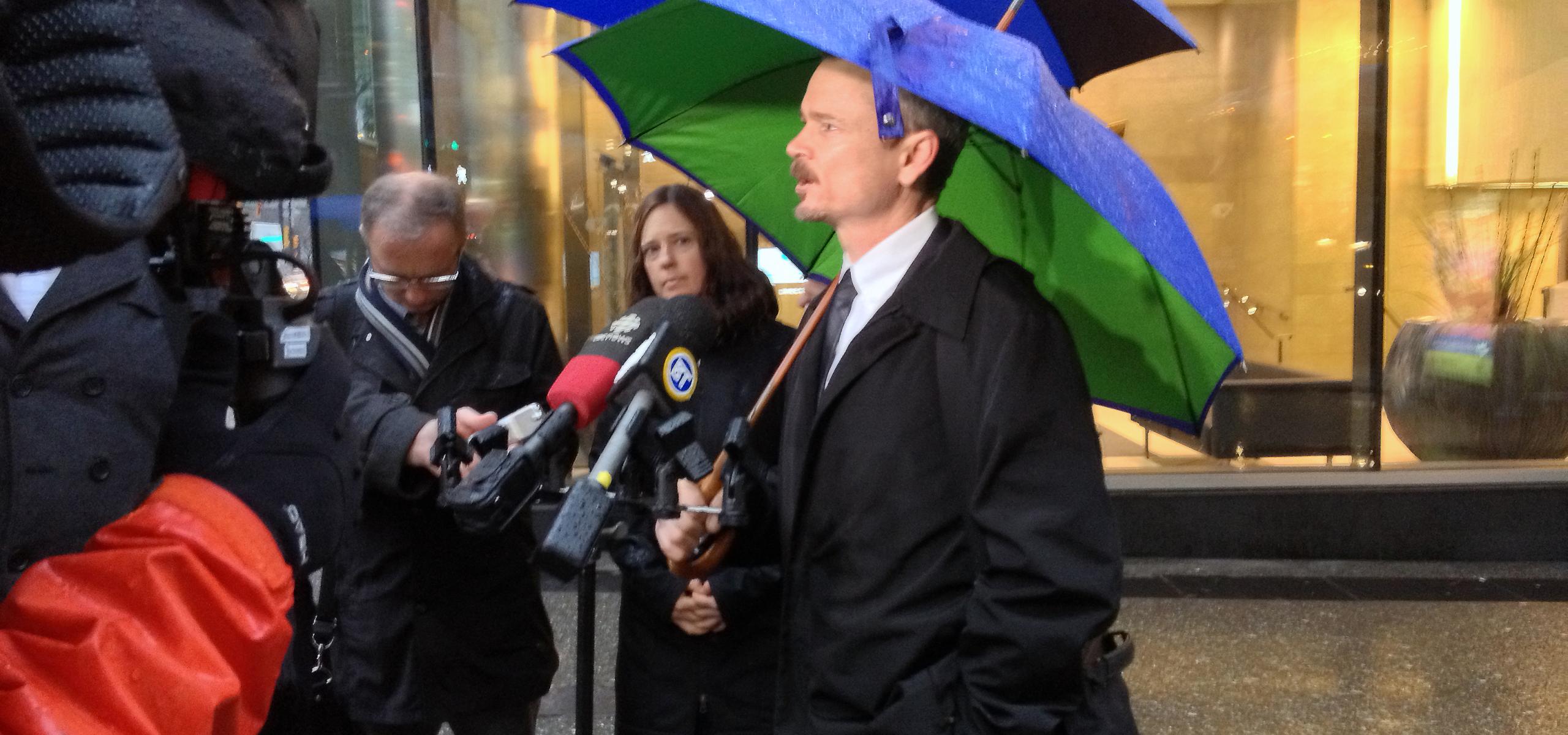 Photo: Ecojustice's Devon Page speaks to reporters outside the courthouse (Kimberly Shearon)