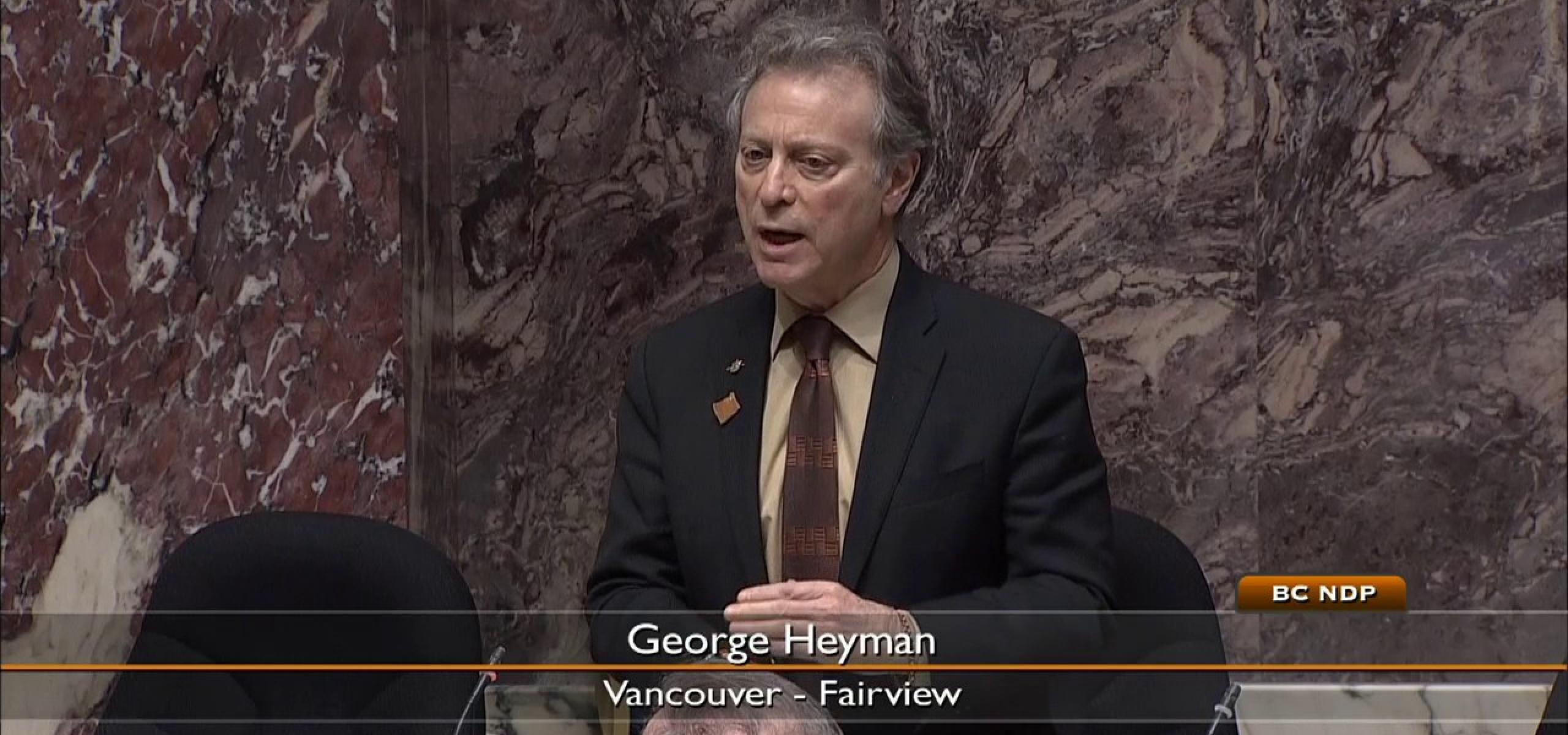 Heyman was first elected to the B.C. legislature in Vancouver-Fairview in 2013 after beating out Vancouver city councillor Geoff Meggs for the party’s riding nomination. He’s been serving as Opposition critic for the environment.