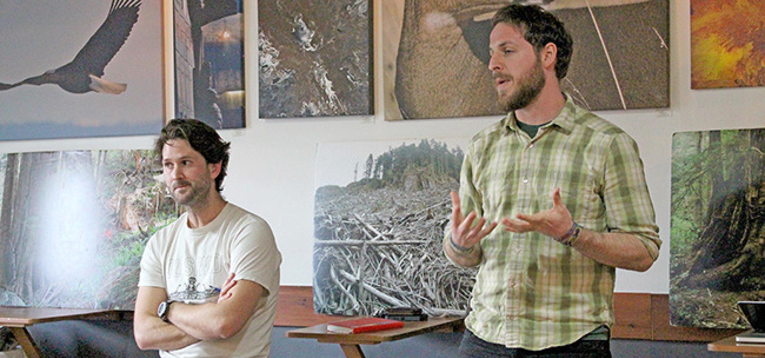 Mark Worthing of the Sierra Club and the Wilderness Committee's Torrance Costa presented slide shows and handed out maps of Vancouver Island showing the loss of old-growth forests since logging began here. Port Hardy was the first stop in their Island tour of this presentation.