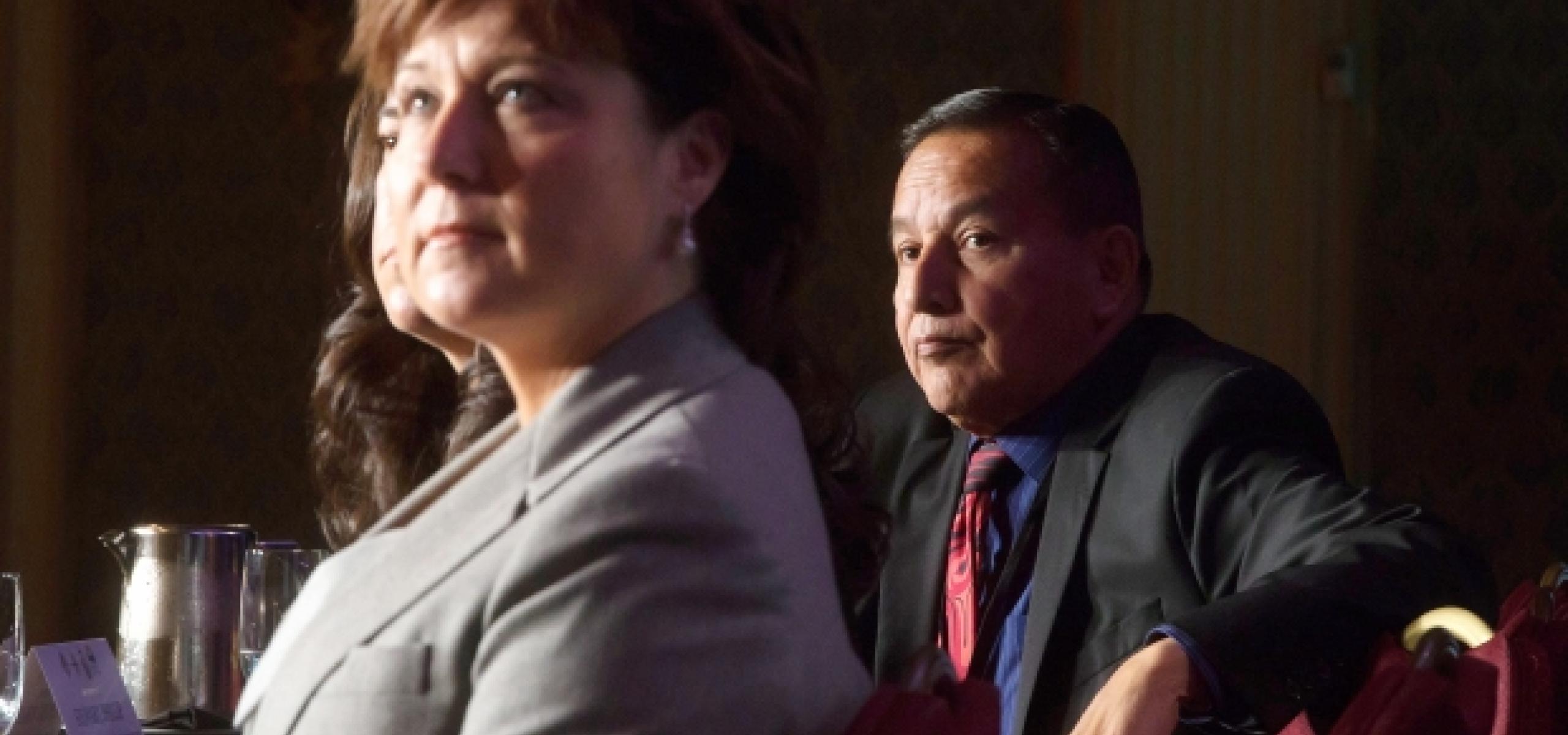 Photo: Grand Chief Stewart Phillip, right, president of the Union of B.C. Indian Chiefs, and B.C. Premier Christy Clark in a meeting with cabinet ministers and First Nations leaders in Vancouver last week.
