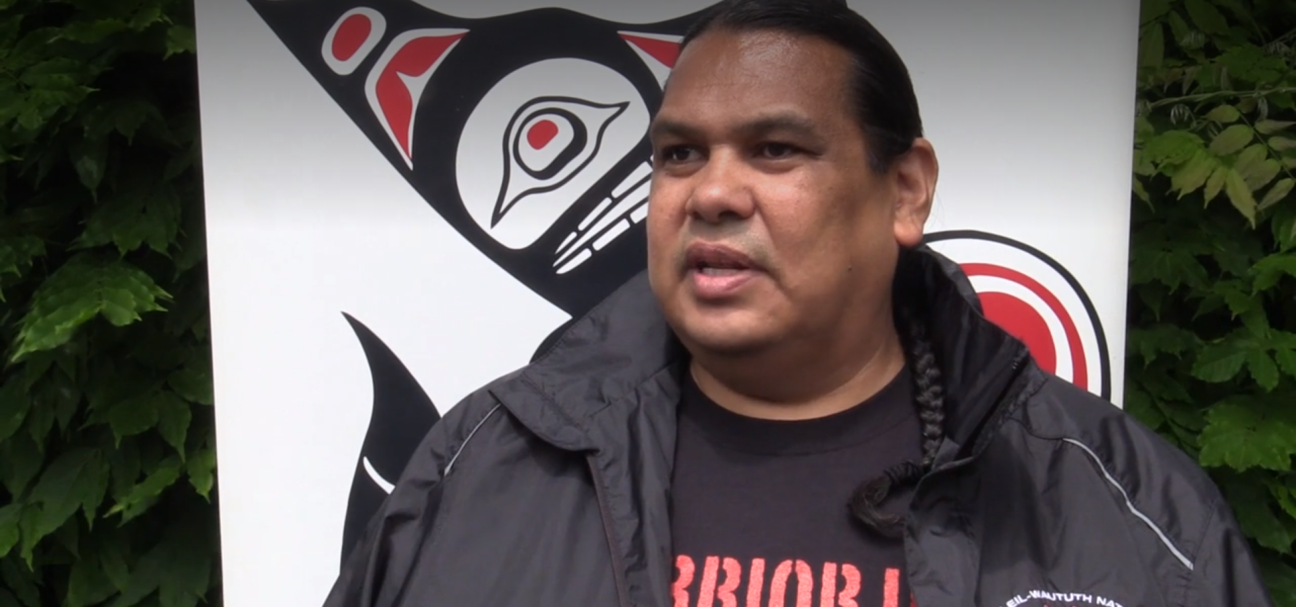 Photo: Reuben George reiterating Tsleil-Waututh opposition to Kinder Morgan (Vancouver Sun video still)