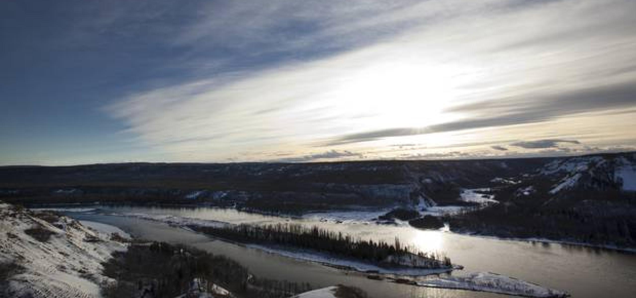 Photo: The area of the Peace River where the proposed Site C Hydro Development Dam would be built near Fort St. John on January 17, 2013.