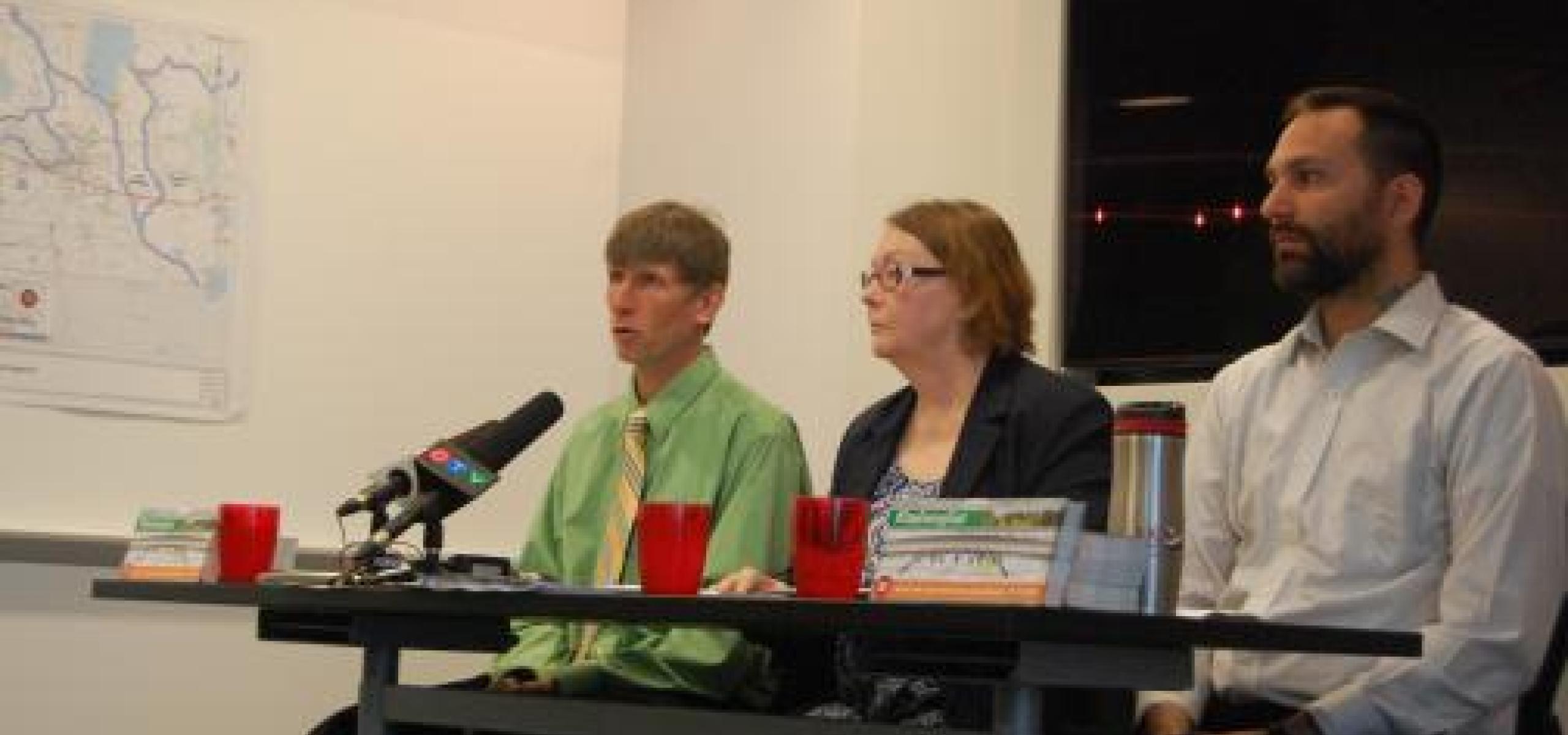 "So what we have is a huge network of transmission lines being run across the province, very large, and those are explicitly to power Energy East," Eric Reder of the Wilderness Committee said Thursday.