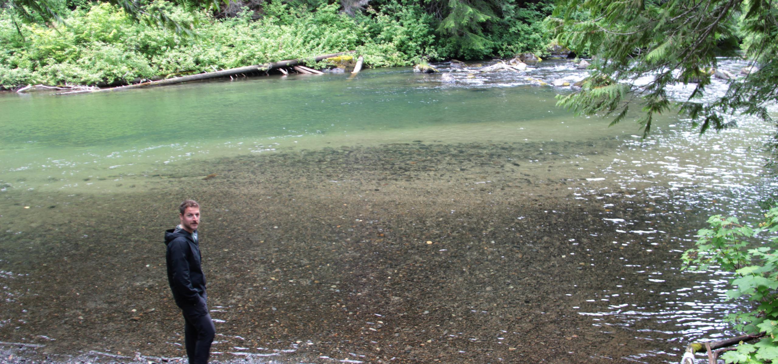 Photo of national campaign director Torrance Coste in Sumallo Creek in Skagit headwaters, by Joe Foy (WC files)